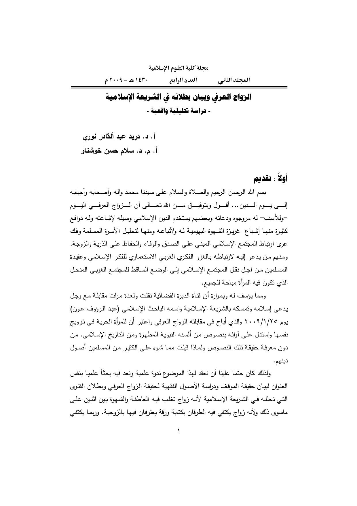 الزواج العرفي وبيان بطلانه في الشريعة الإسلامية