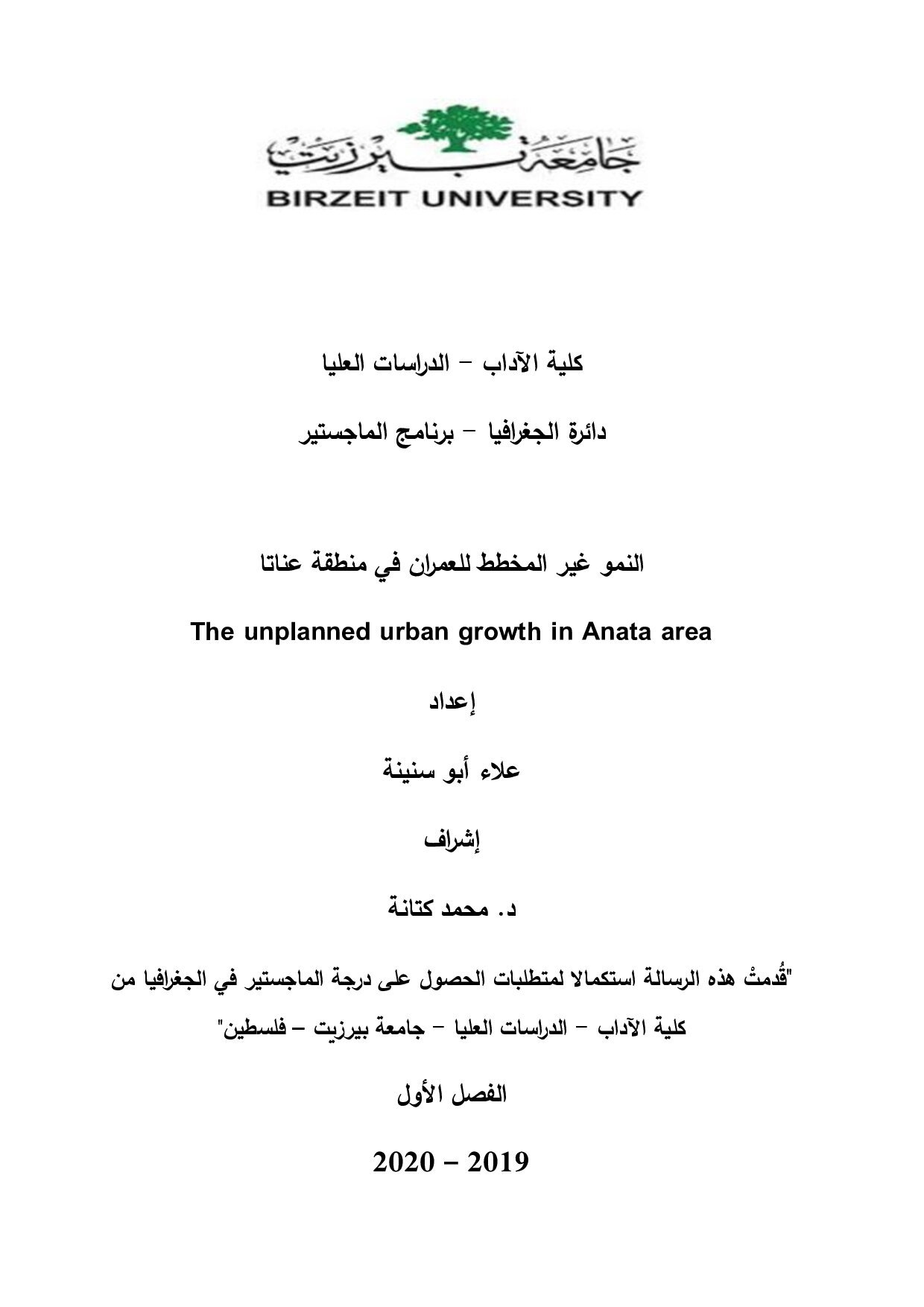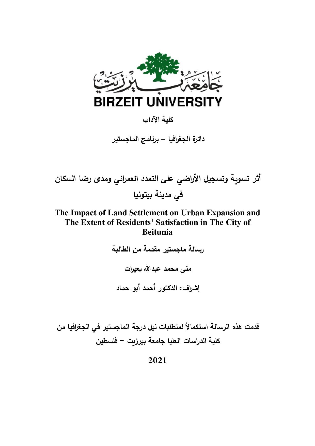 أثر تسوية وتسجيل الأراضي على التمدد العمرانيّ ومدى رضا السّكان في مدينة بيتونيا