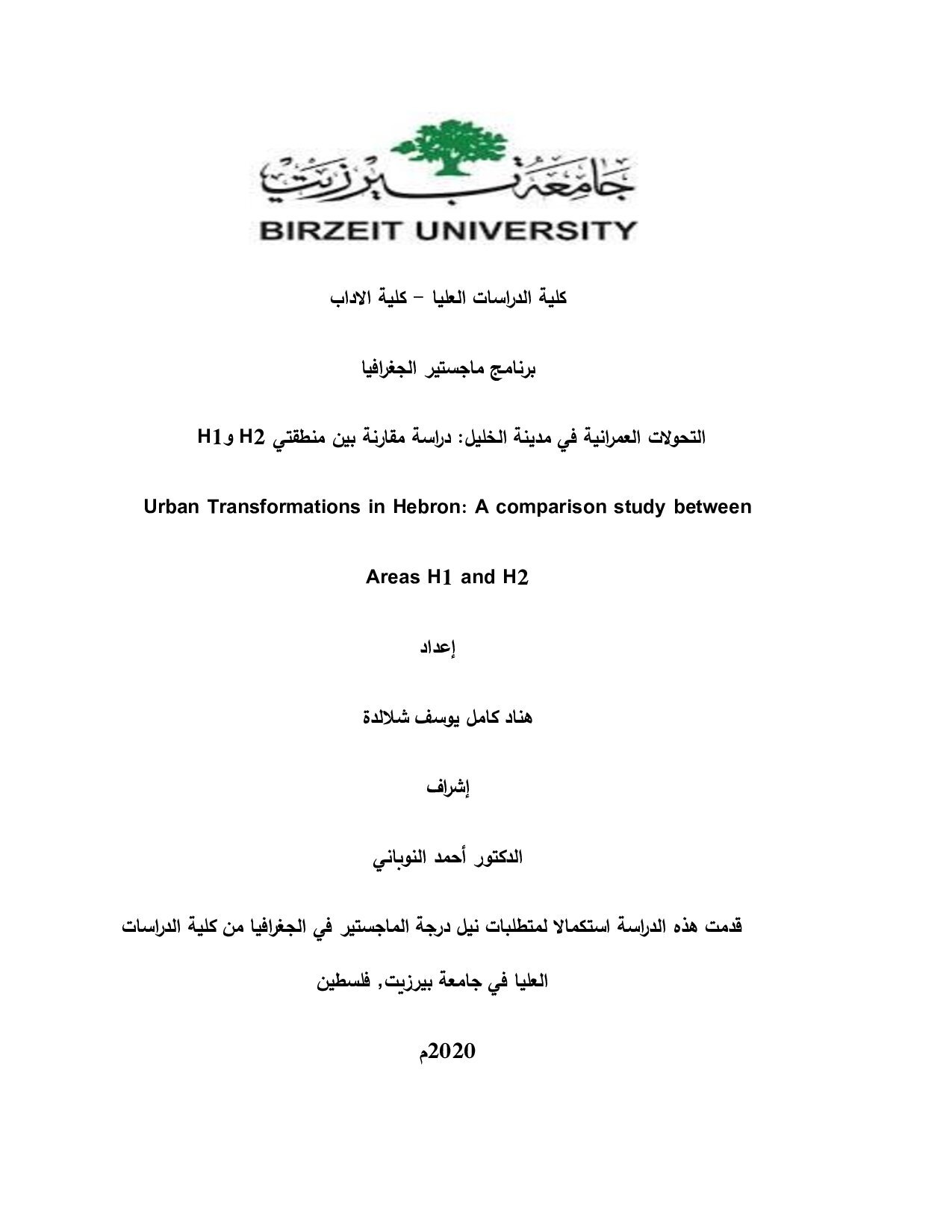 التحولات العمرانيّة في مدينة الخليل: دراسة مقارنة بين منطقتي H2 و 1 H