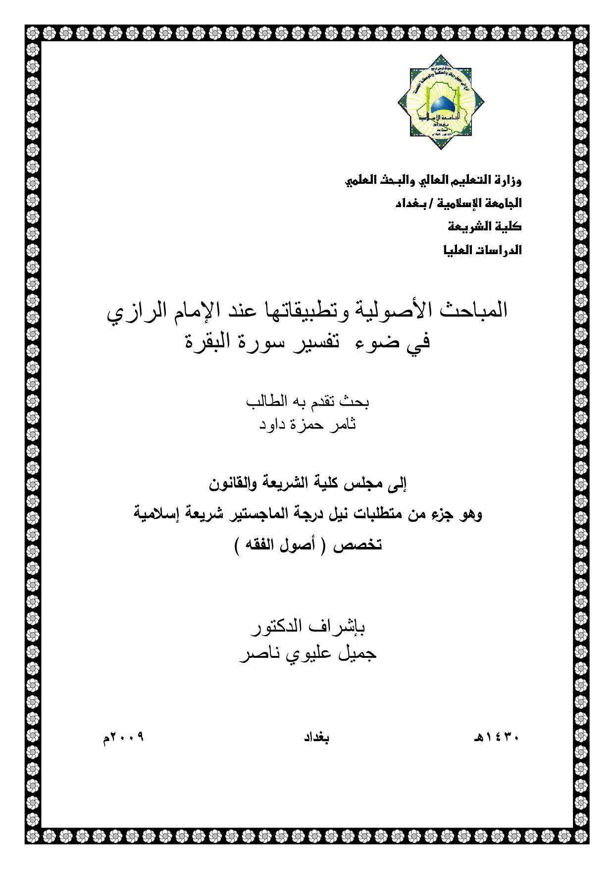 المباحث الأصولية وتطبيقاتها عبد الإمام الرازي في ضوء تفسير سورة البقرة
