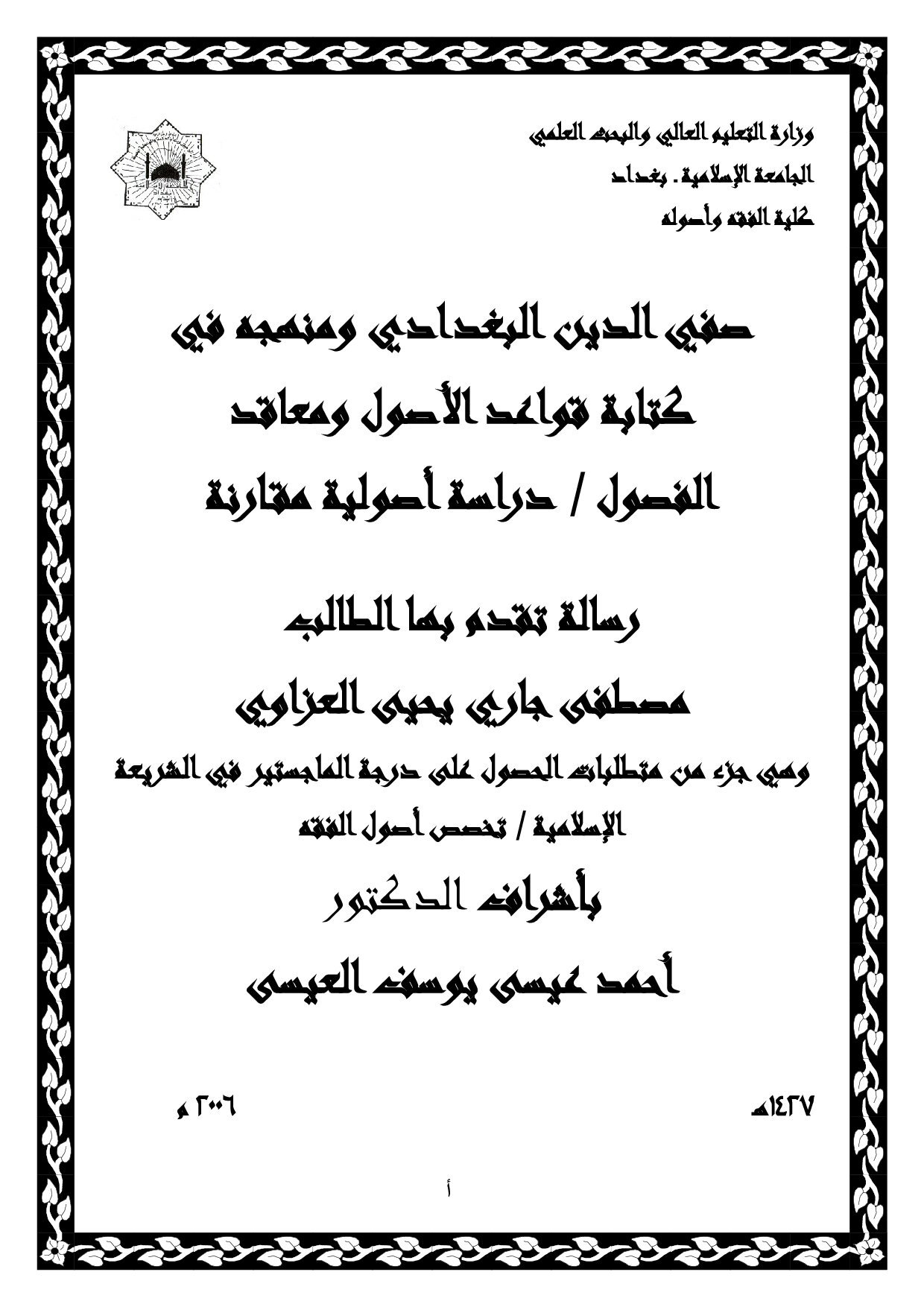 صفي الدين البغدادي ومنهجه في كتابتة قواعد الأصول ومعاقد الفصول (دراسة أصولية مقارنة)