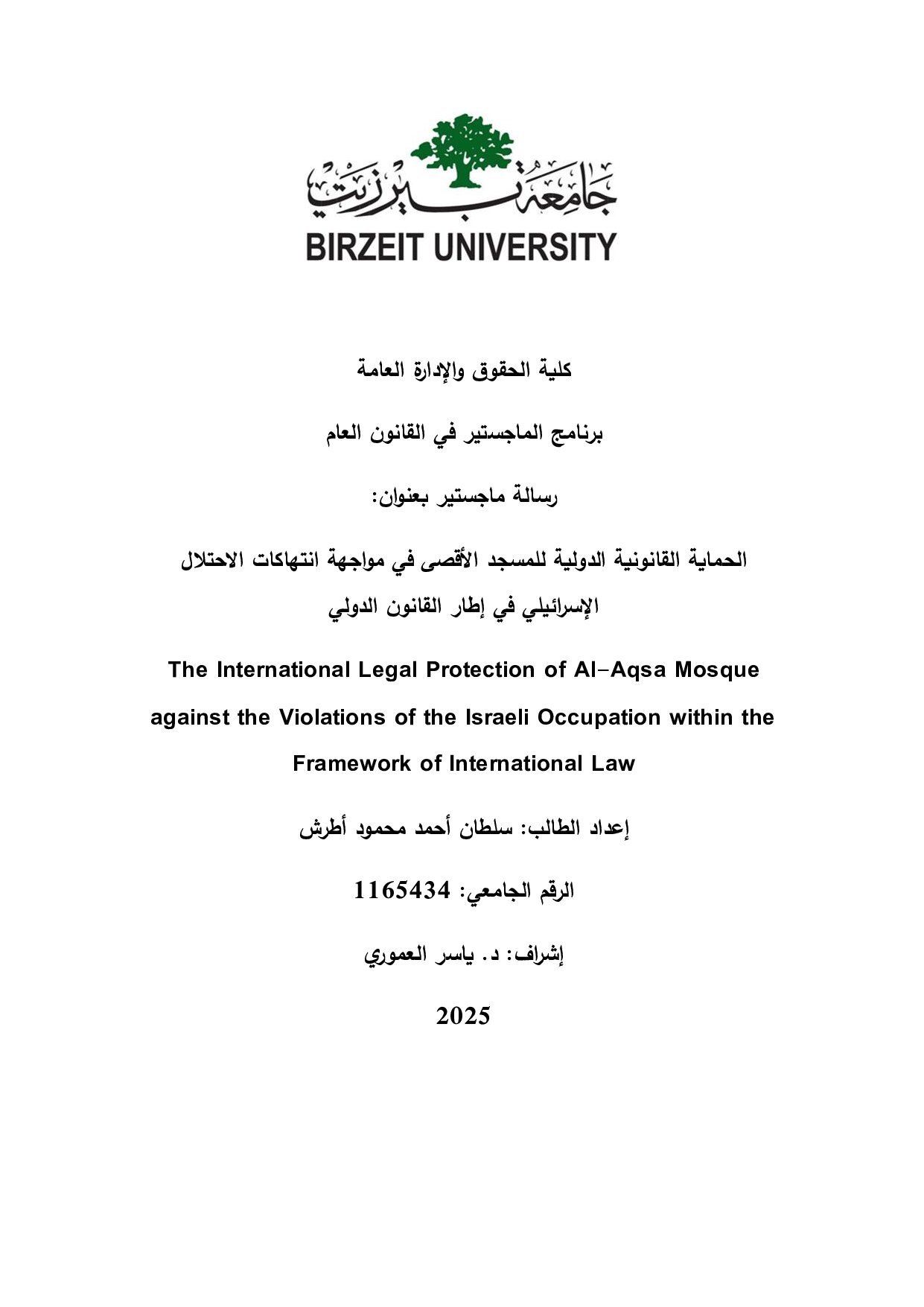 الحماية القانونيّة الدّوليّة للمسجد الأقصى في مواجهة انتهاكات الاحتلال الإسرائيليّ في إطار القانون الدّوليّ