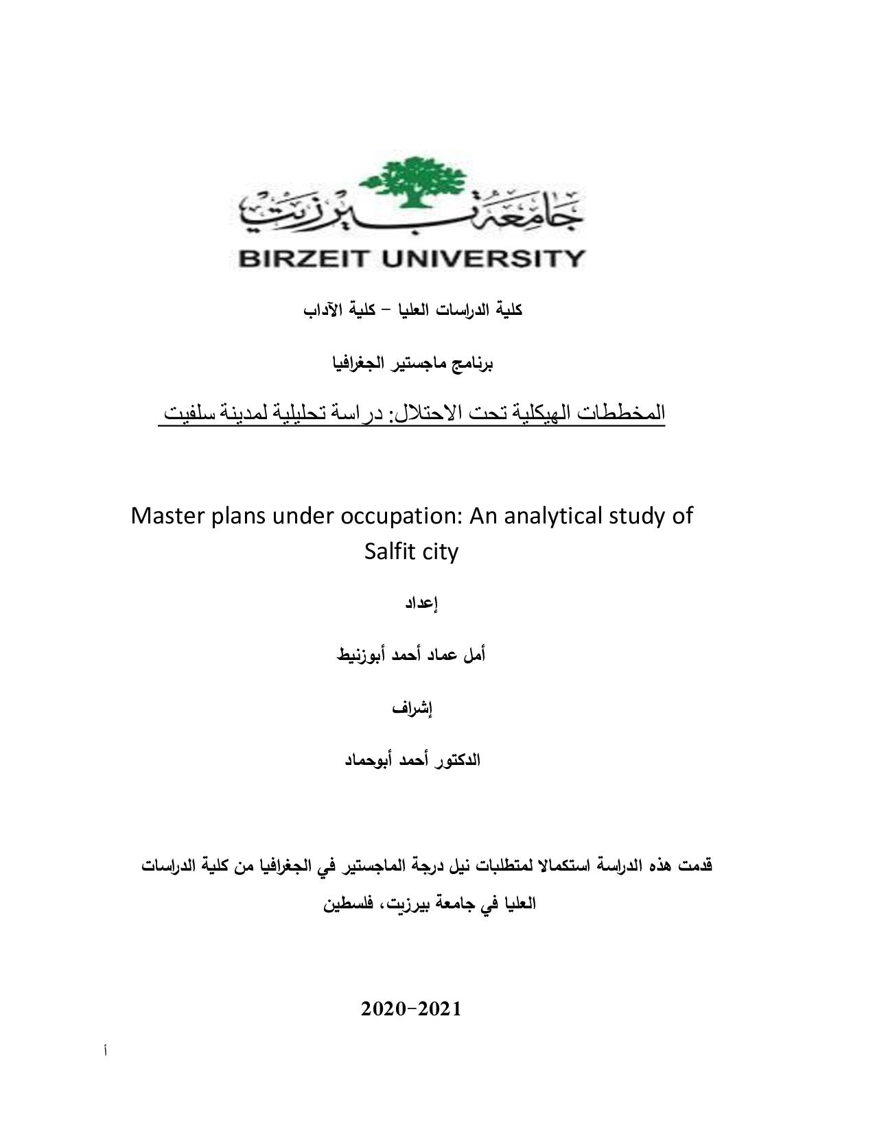 أثر تسوية وتسجيل الأراضي على التمدد العمرانيّ ومدى رضا السّكان في مدينة بيتونيا