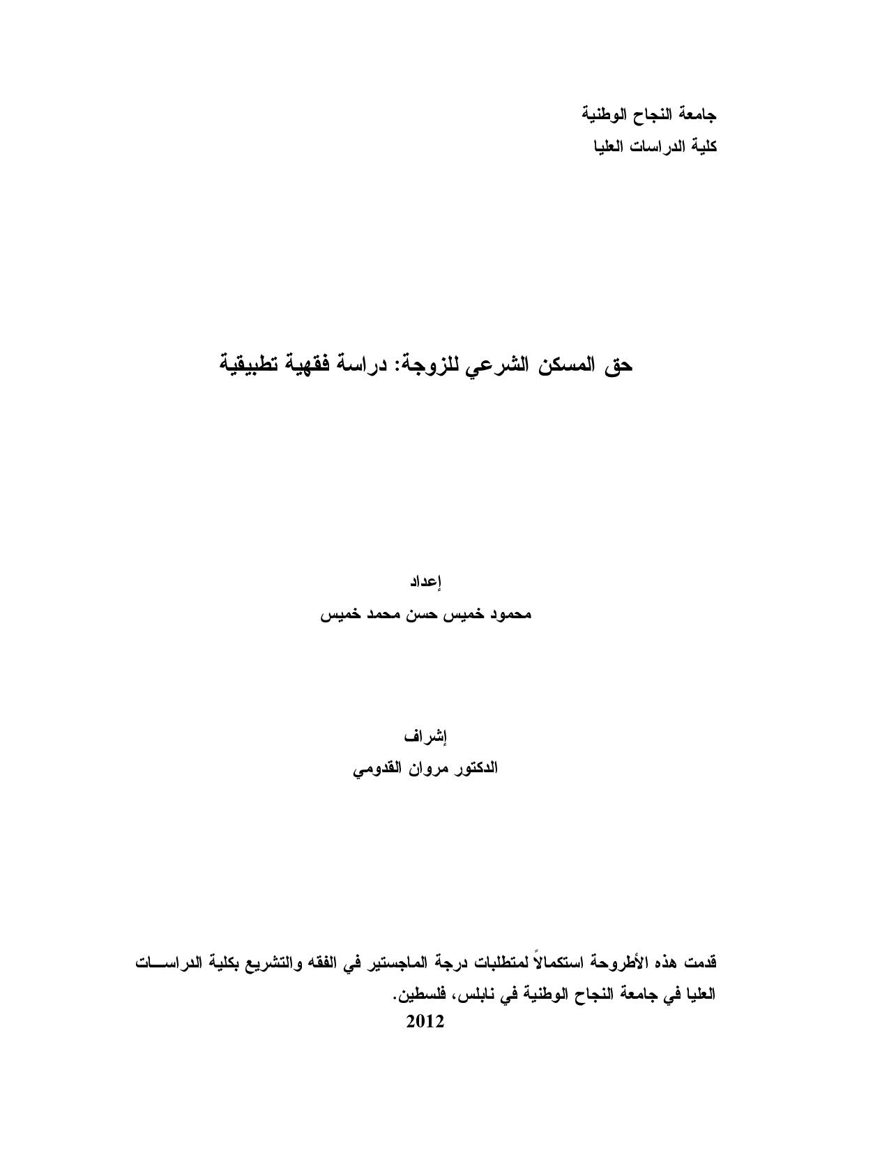حق المسكن الشّرعيّ للزوجة: دراسة فقهيّة مقارنة تطبيقيّة