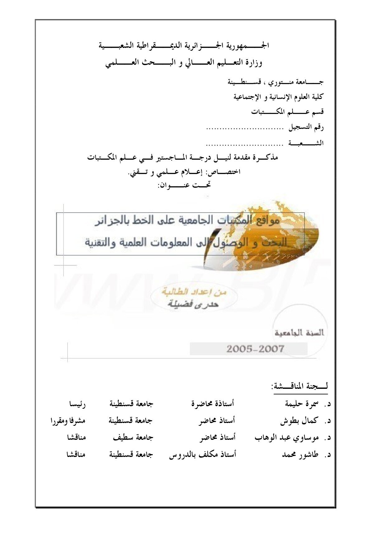 مواقع المكتبات الجامعية على الخط بالجزائر البحث والوصول إلى المعلومات العلمية والتقنية