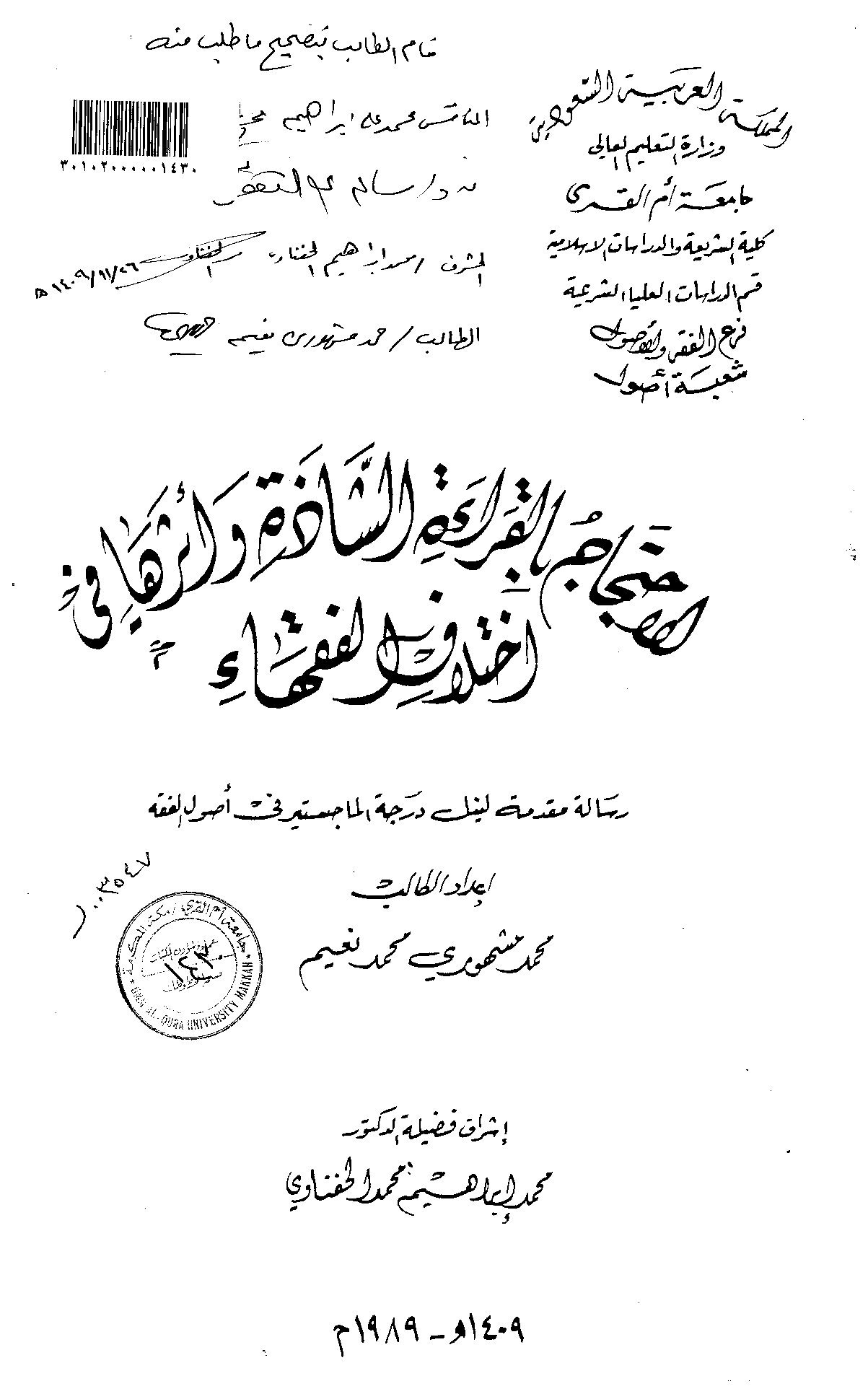 الاحتجاج_بالقراءة_الشاذة_واثرها_في_اختلاف_الفقهاء_الرسالة_العلمية